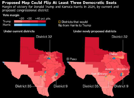 重划选区的时机极为不寻常,而在民主党人出走的情况下,事件在周末迅速发酵成一场全国性大戏。作为回应, 加利福尼亚州长加文·纽瑟姆和纽约州长凯西·霍楚尔等民主党人开始讨论在自己的地盘重划选区进行报复。