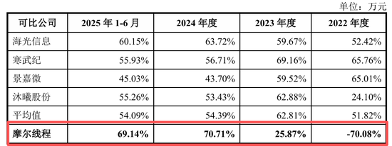 比如,2023年综合毛利率转正,为25.87%,2024年则大幅提升至70.71%。今年上半年毛利率也有69.14%,依然高于同行业可比公司平均值。