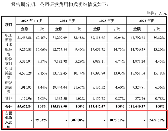 公司解释,巨额亏损源于持续的高研发投入。2022年至2025年上半年,研发费用累计43.66亿元,研发人员占比超七成。